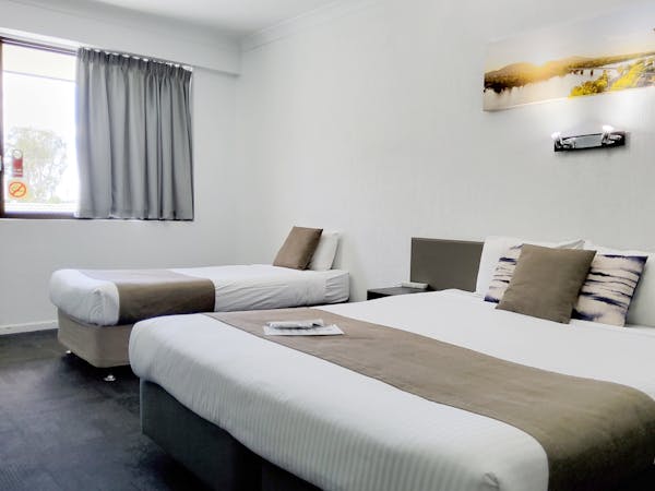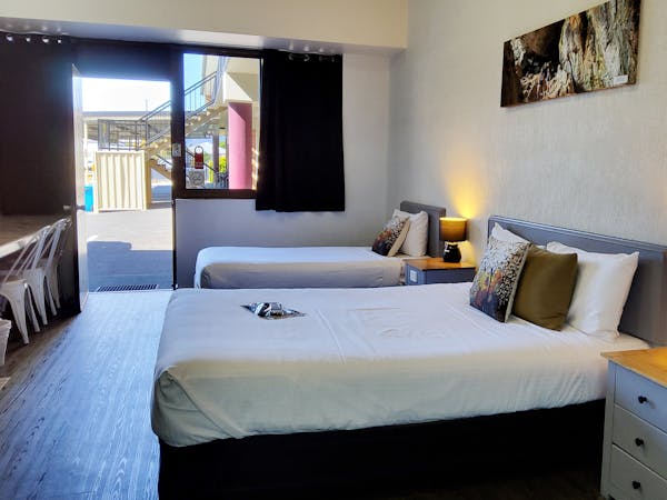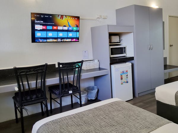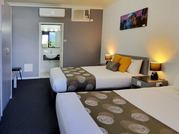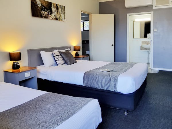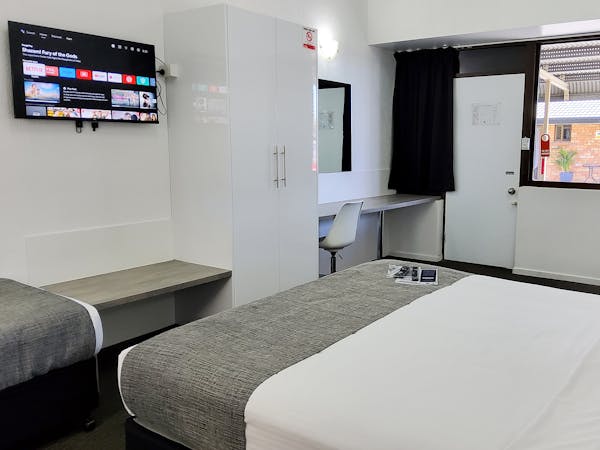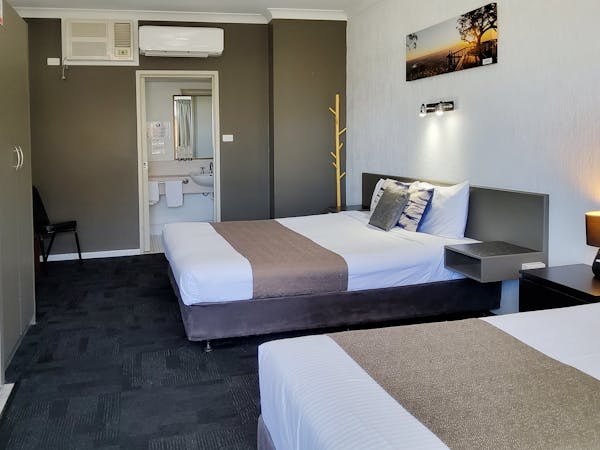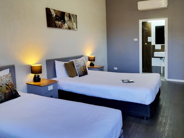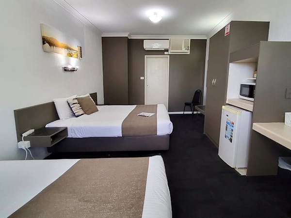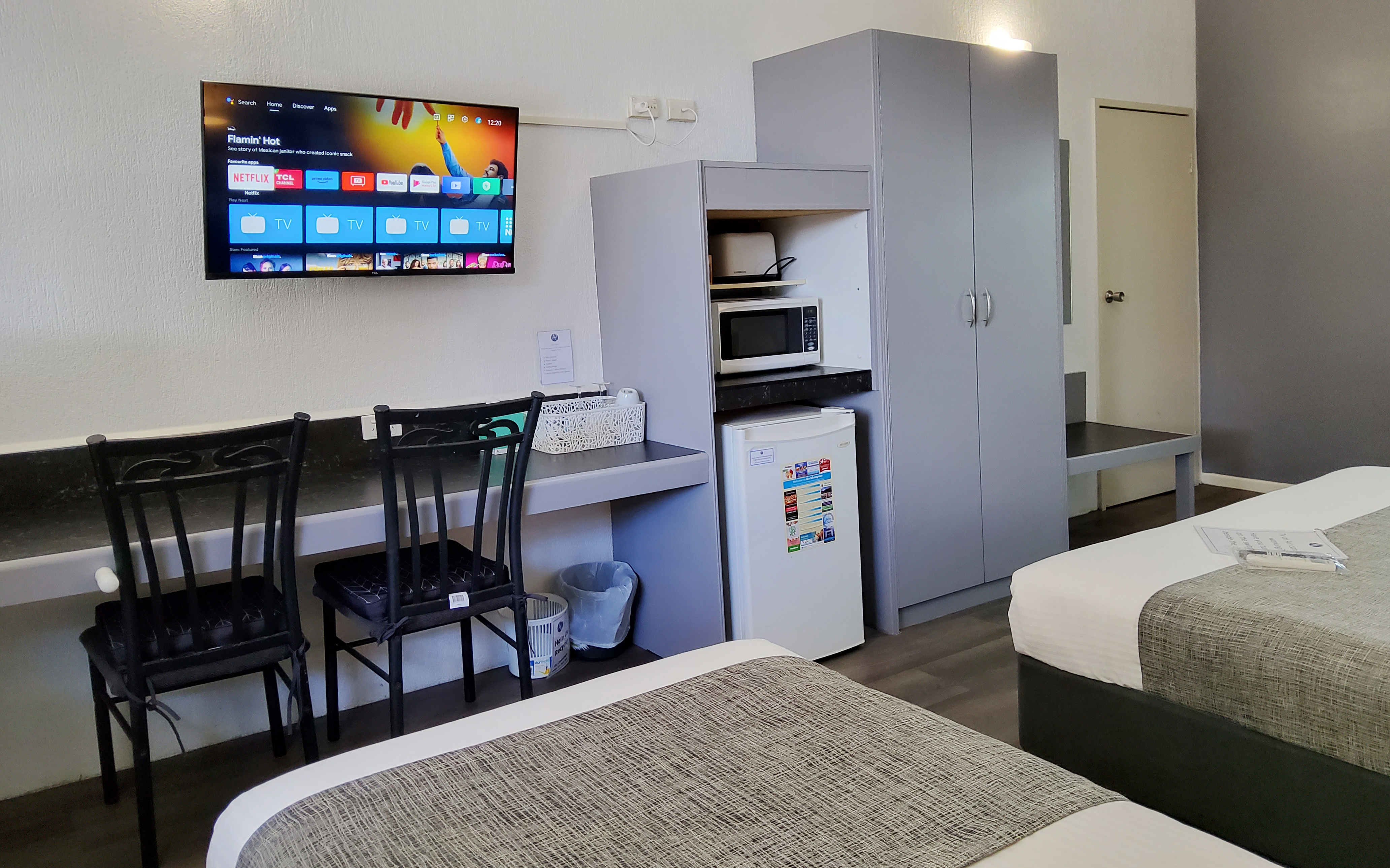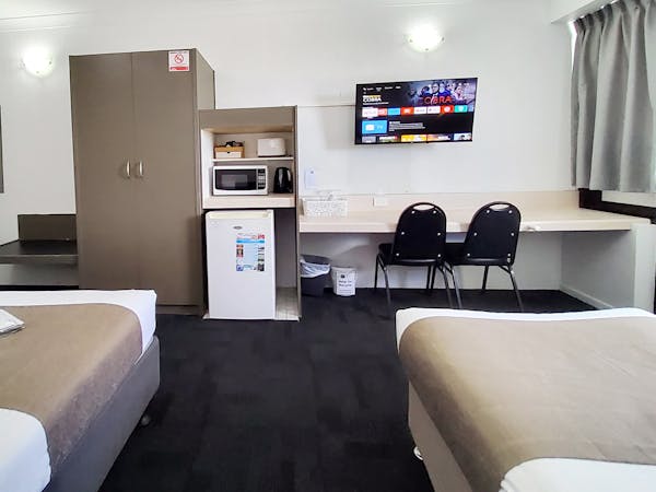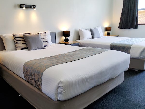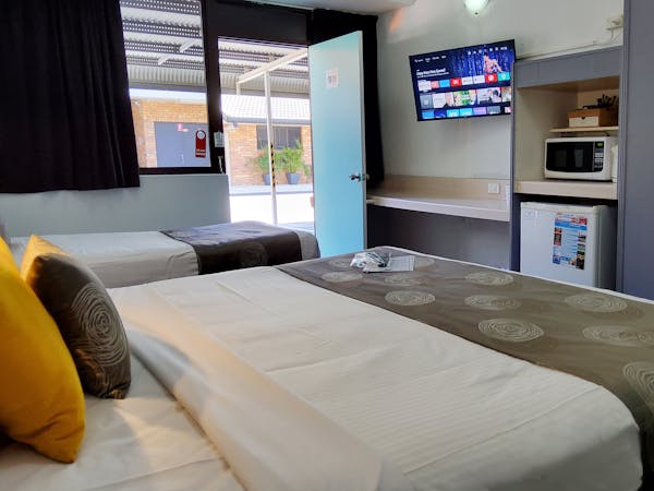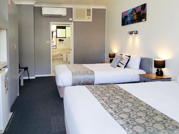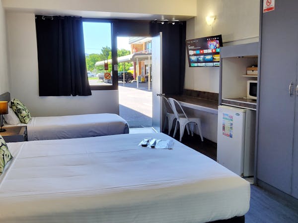 **Please note pets cannot be accommodated in this room**. Located on the first floor, these rooms have 2 Queen beds. The room has air-conditioning, flat screen smart TV, tea & coffee facilities, bar fridge, microwave, toaster, hairdryer, iron, ironing board, free wi-fi.
