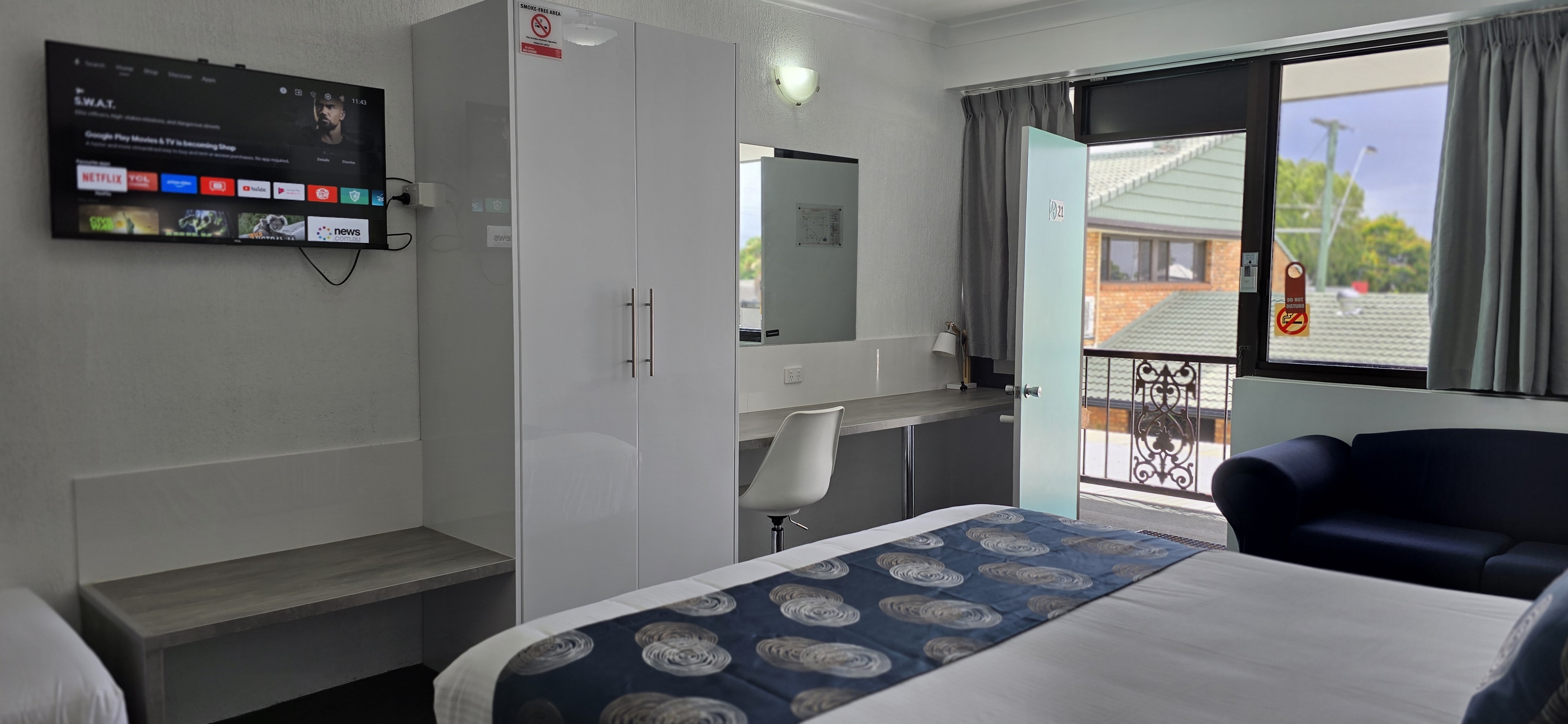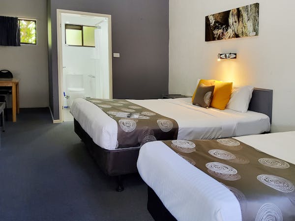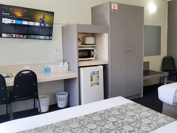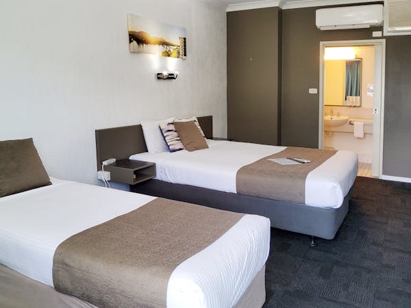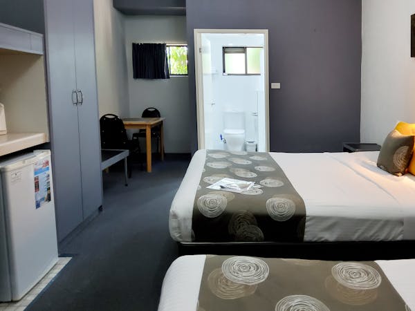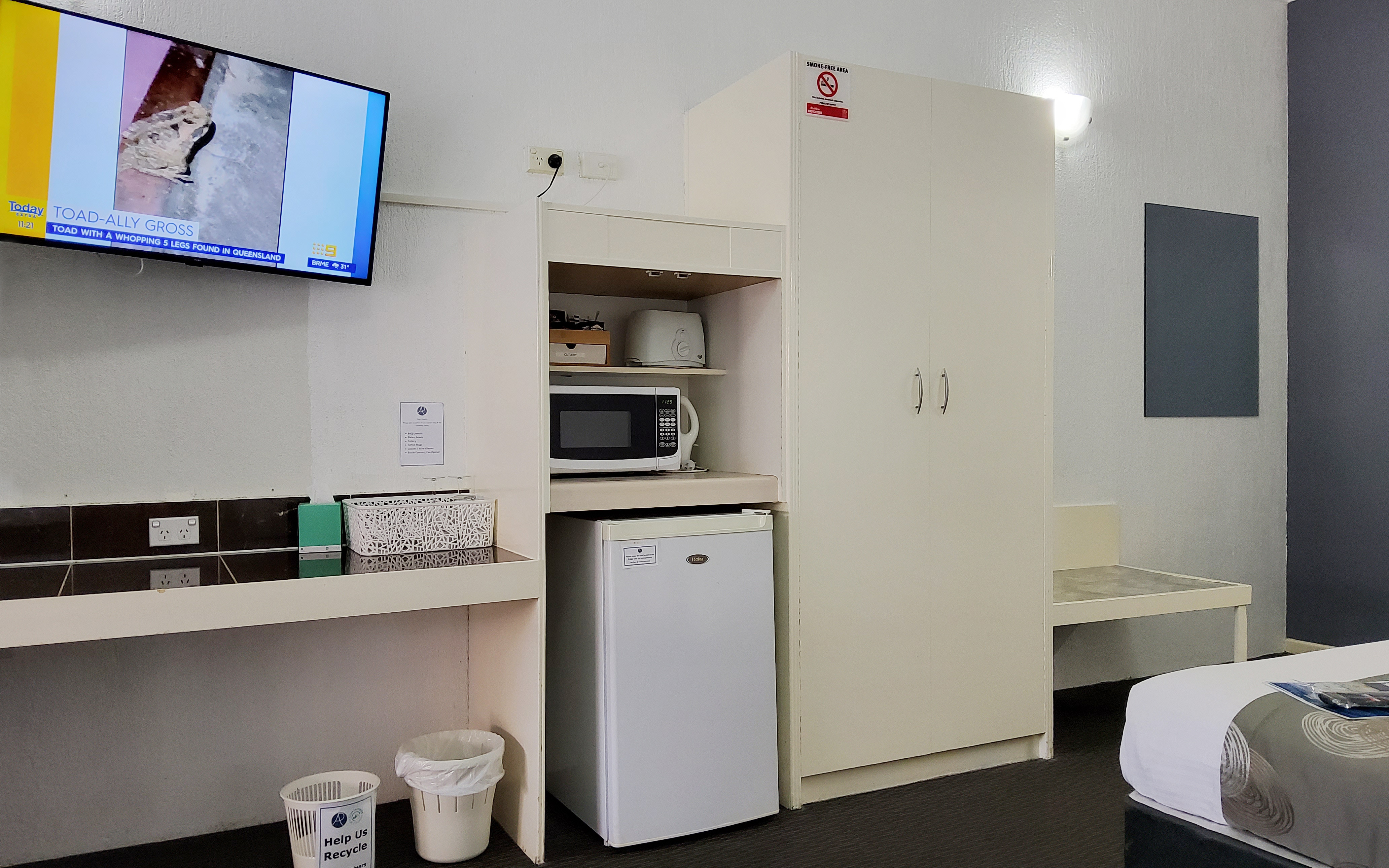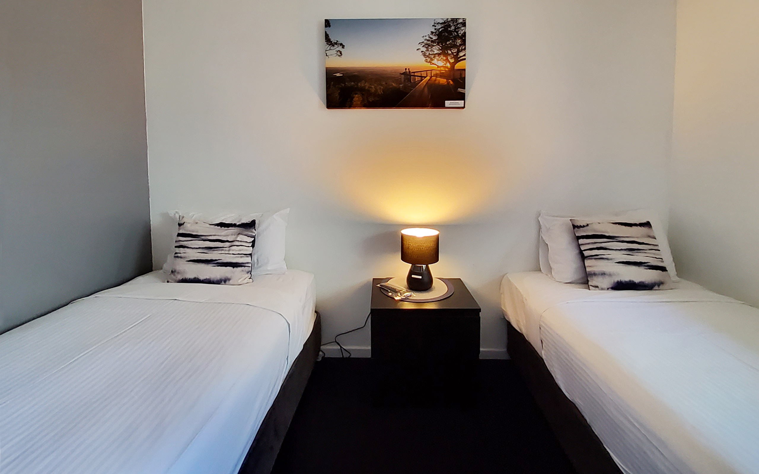**Please note pets cannot be accommodated in this room**. Located on the first floor, these rooms have 2 Queen beds. The room has air-conditioning, flat screen smart TV, tea & coffee facilities, bar fridge, microwave, toaster, hairdryer, iron, ironing board, free wi-fi.