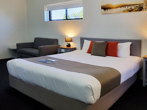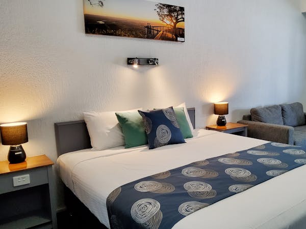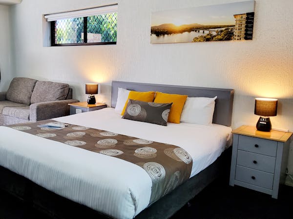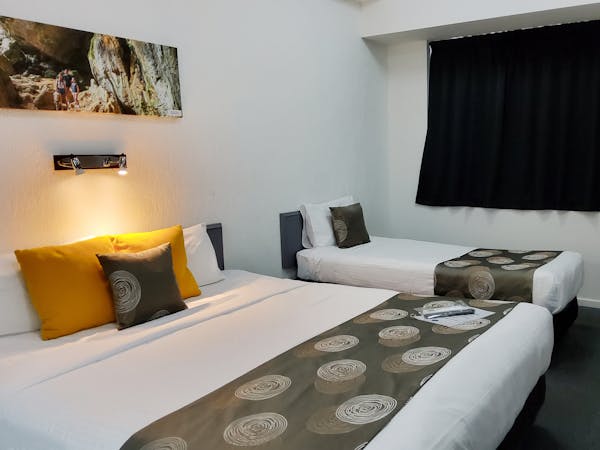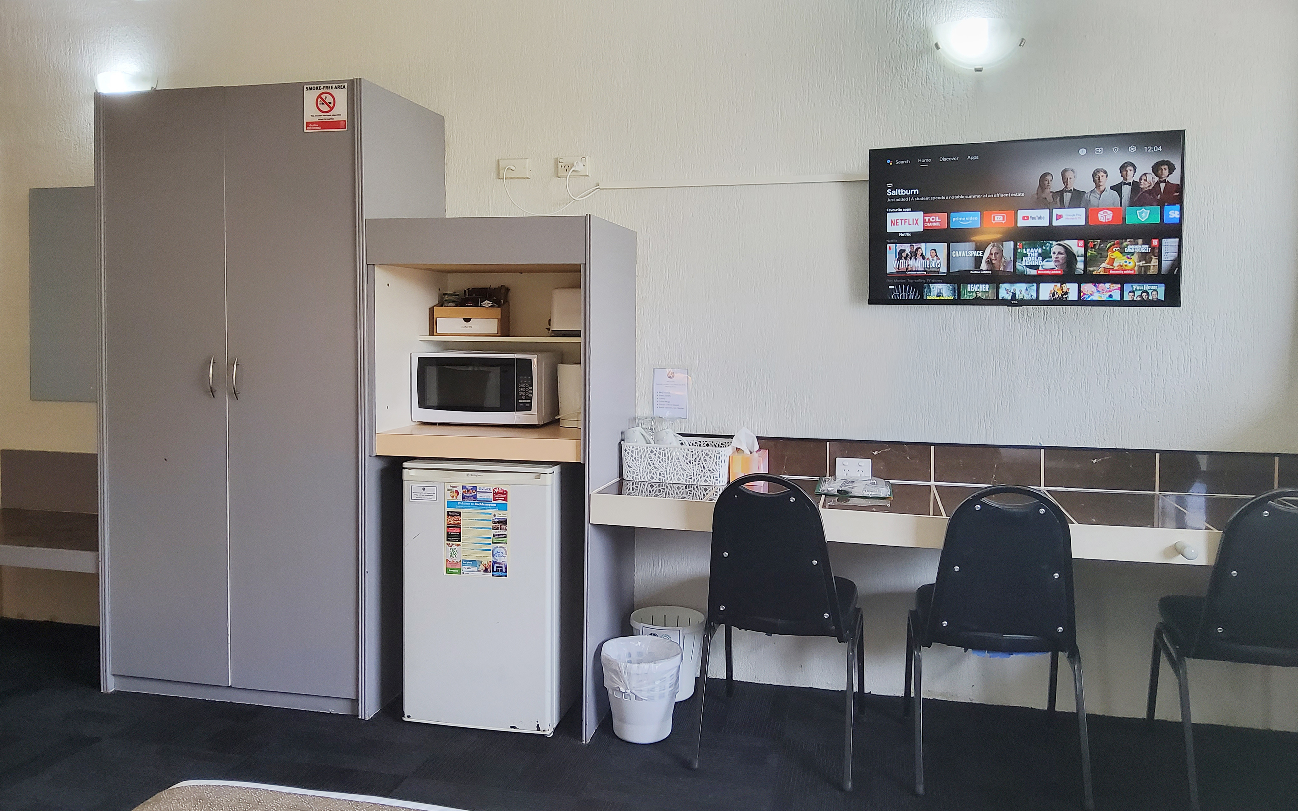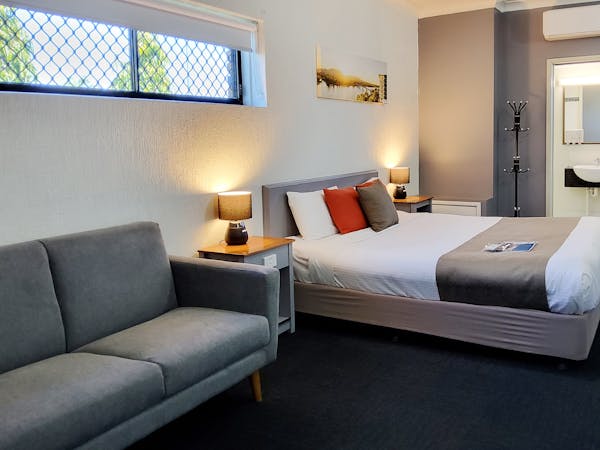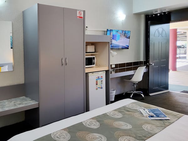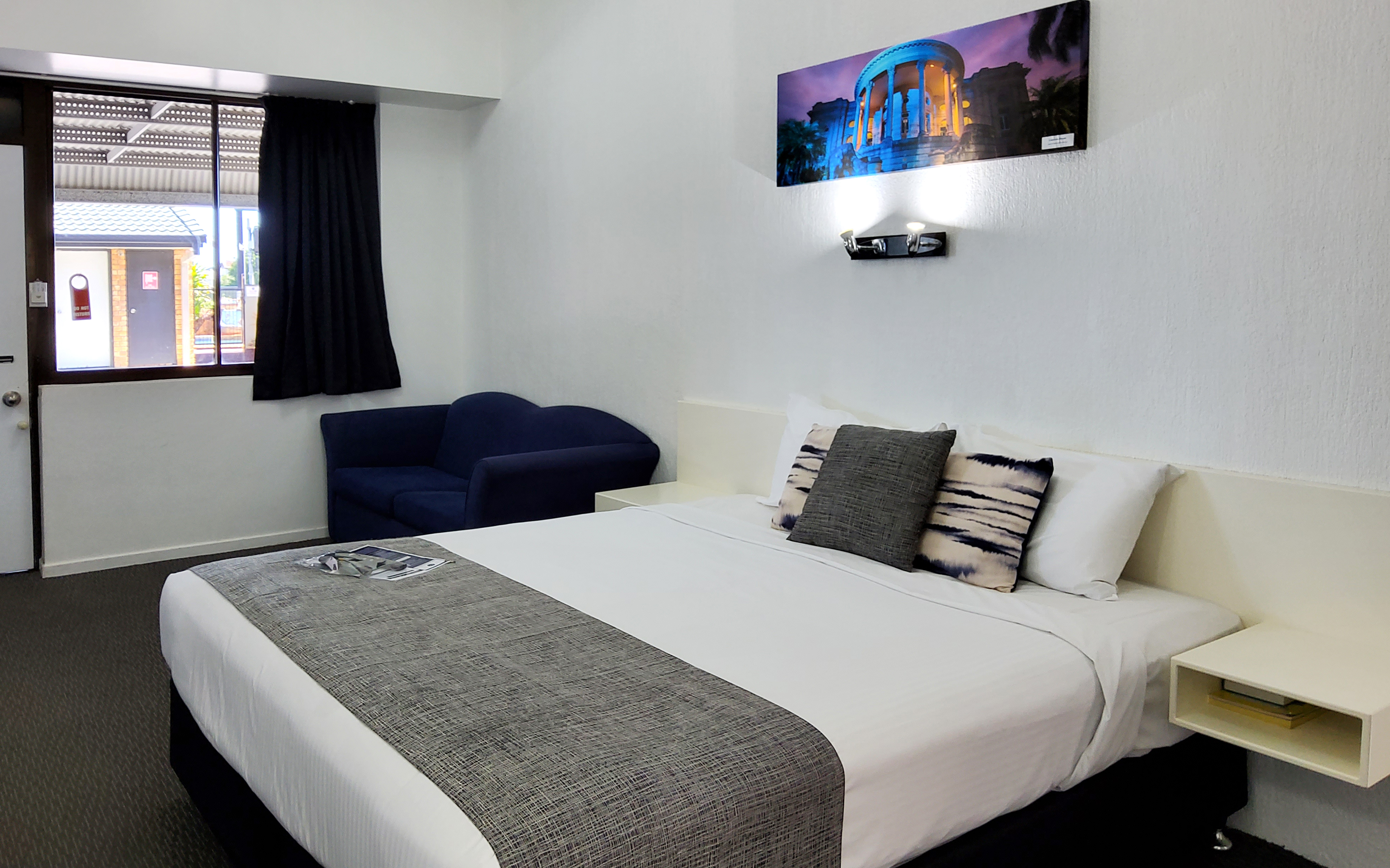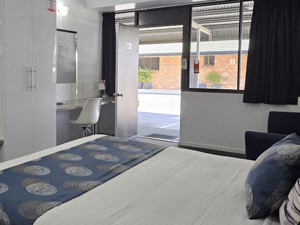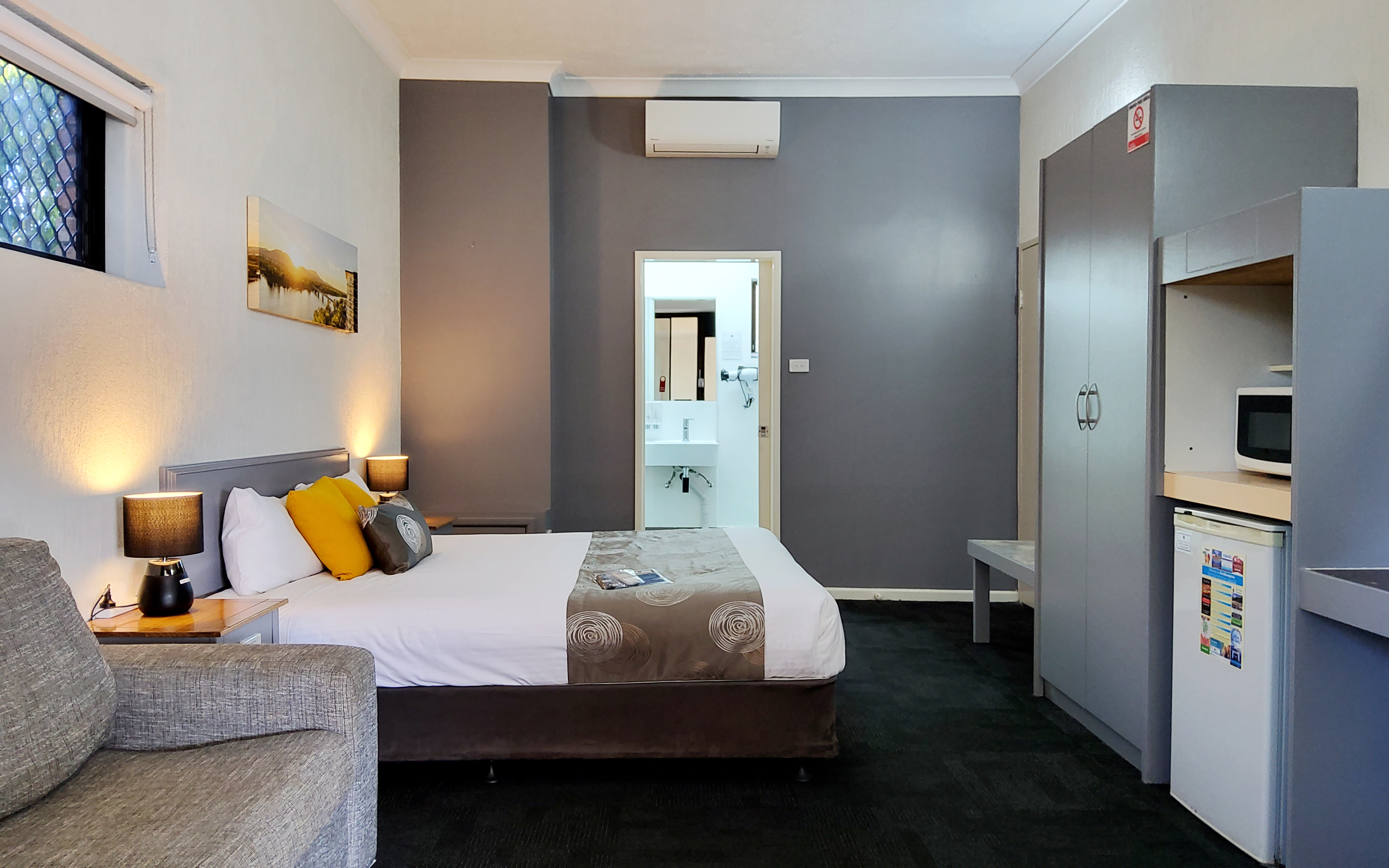 **Please note pets cannot be accommodated in this room**. Located on the first floor, these rooms have 2 Queen beds. The room has air-conditioning, flat screen smart TV, tea & coffee facilities, bar fridge, microwave, toaster, hairdryer, iron, ironing board, free wi-fi.