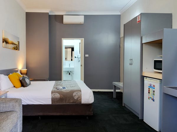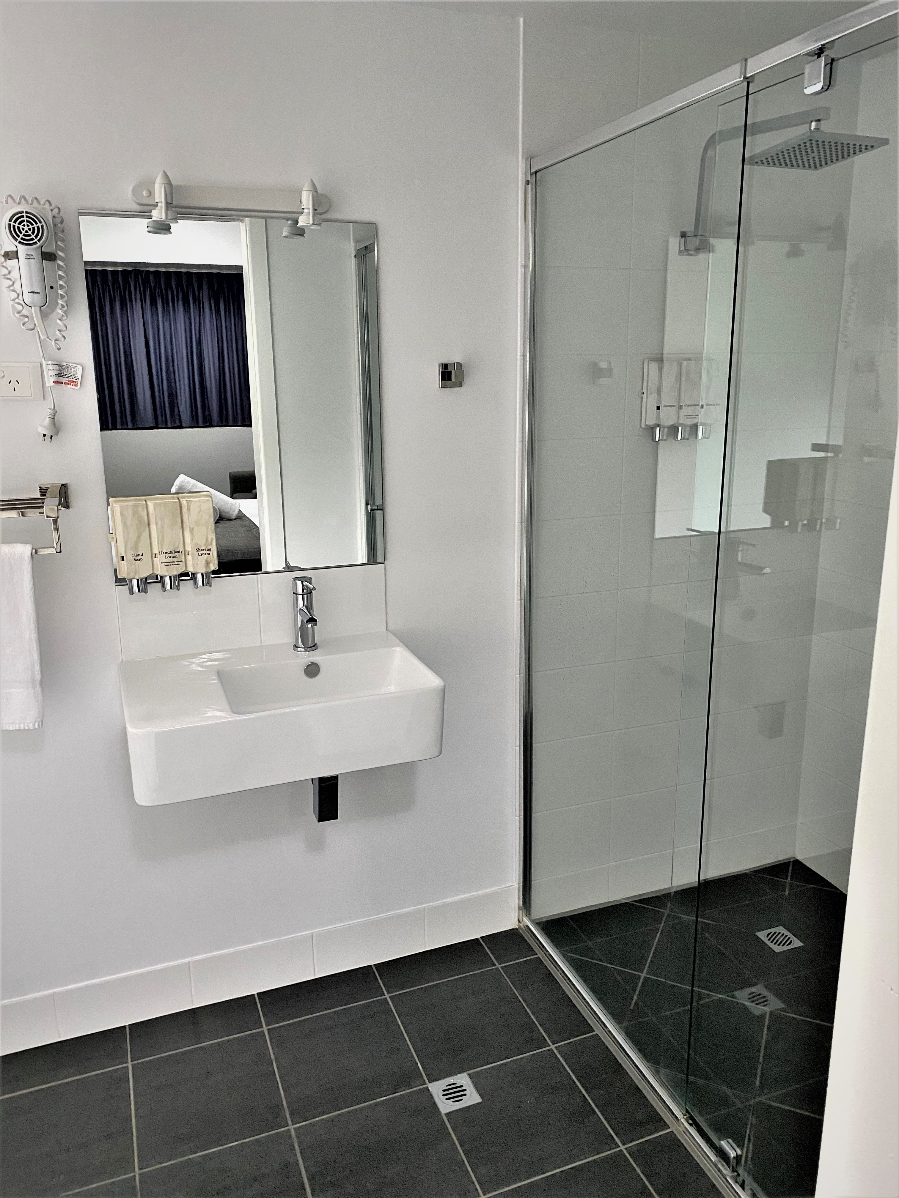 **Please note pets cannot be accommodated in this room**. Located on either the ground or first floor, these room have Queen bed and a Single bed. The room has an en-suite, air-conditioning, flat screen smart TV, tea & coffee facilities, bar fridge, microwave, toaster, hairdryer, iron, ironing board, free wi-fi.