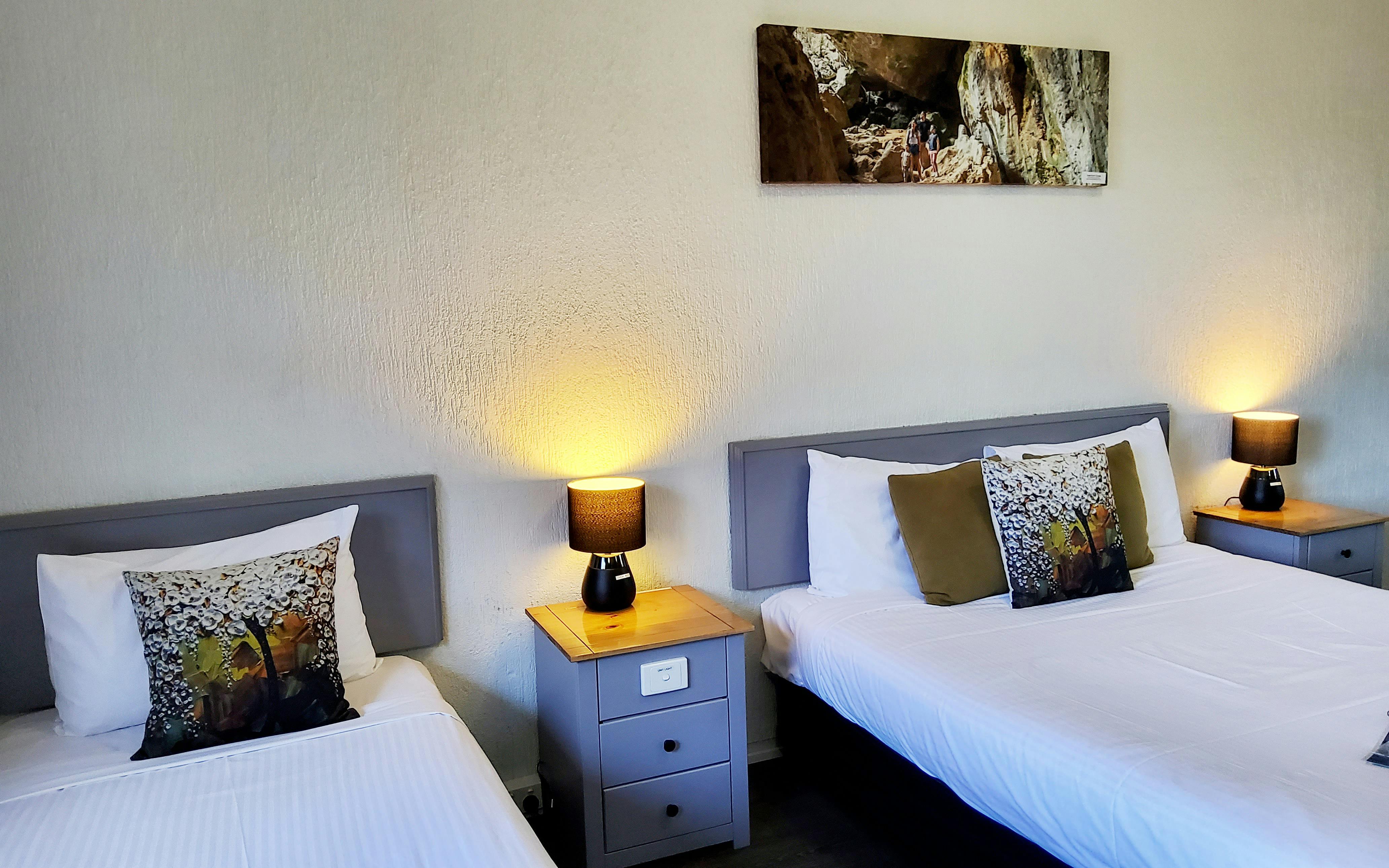 Located on the ground floor, it contains a Queen size bed and Single bed. The room has an en-suite, air-conditioning, flat screen smart TV, tea & coffee facilities, bar fridge, microwave, toaster, hairdryer, iron, ironing board, free wi-fi. This room can accommodate pets.